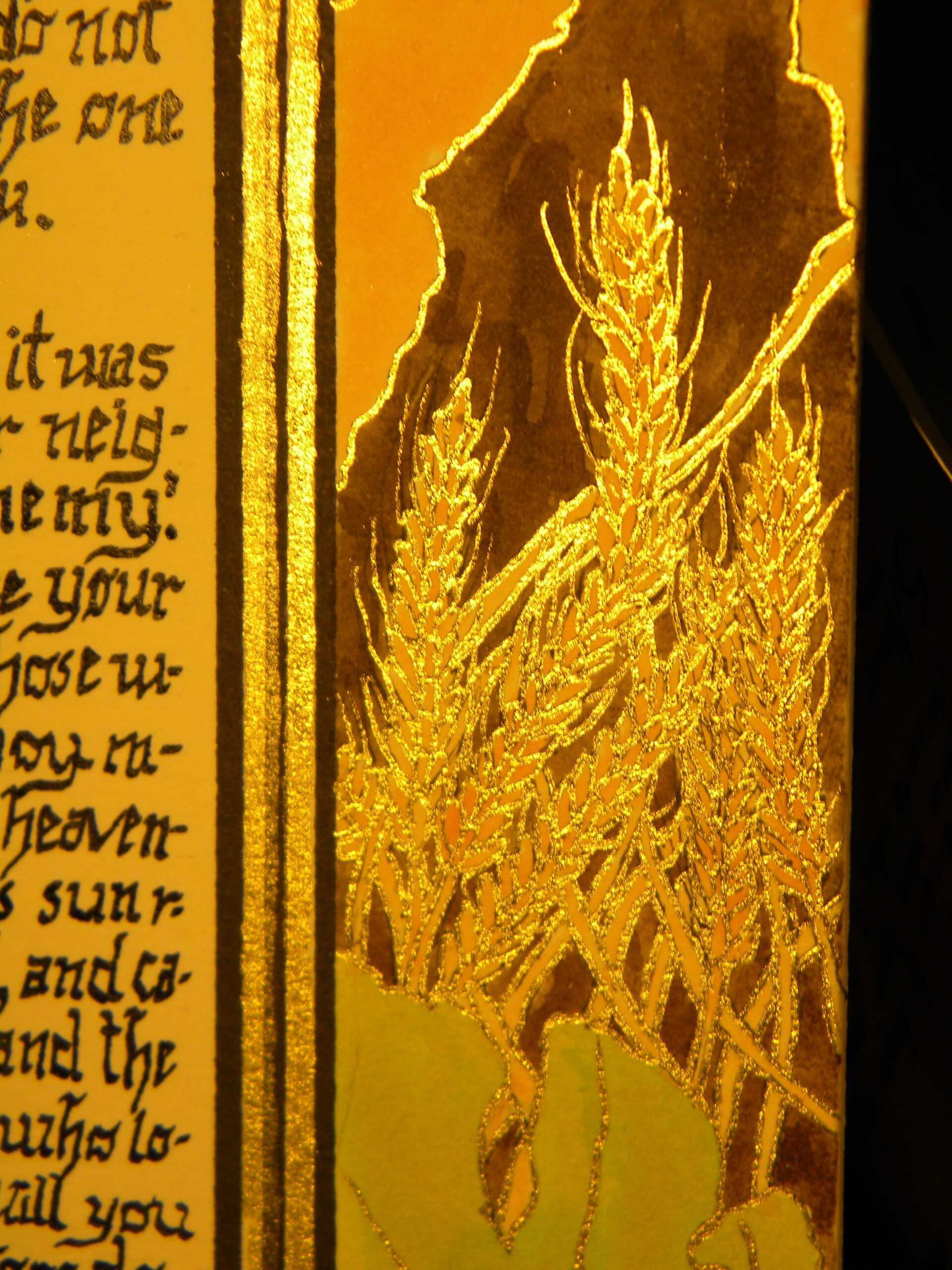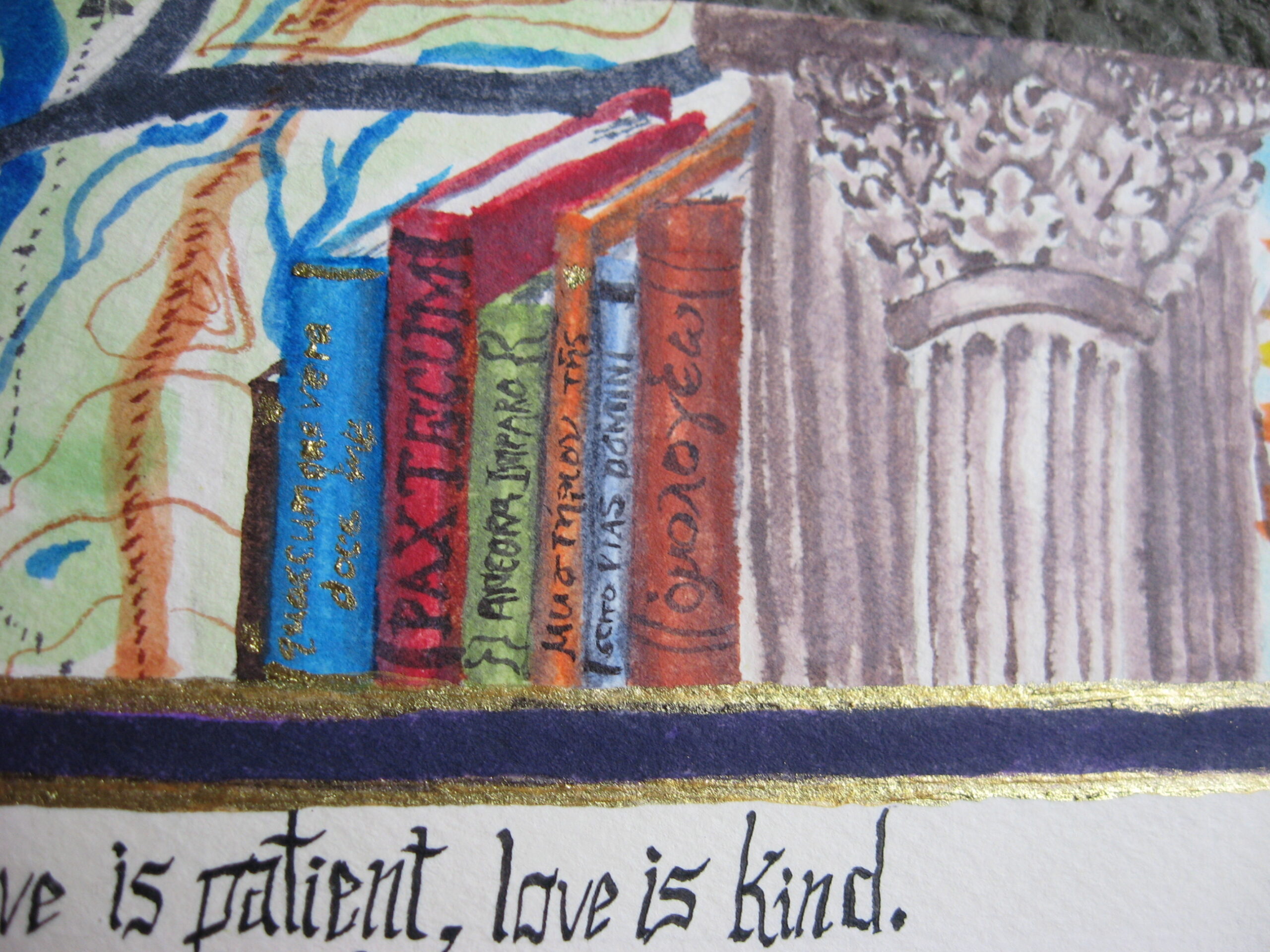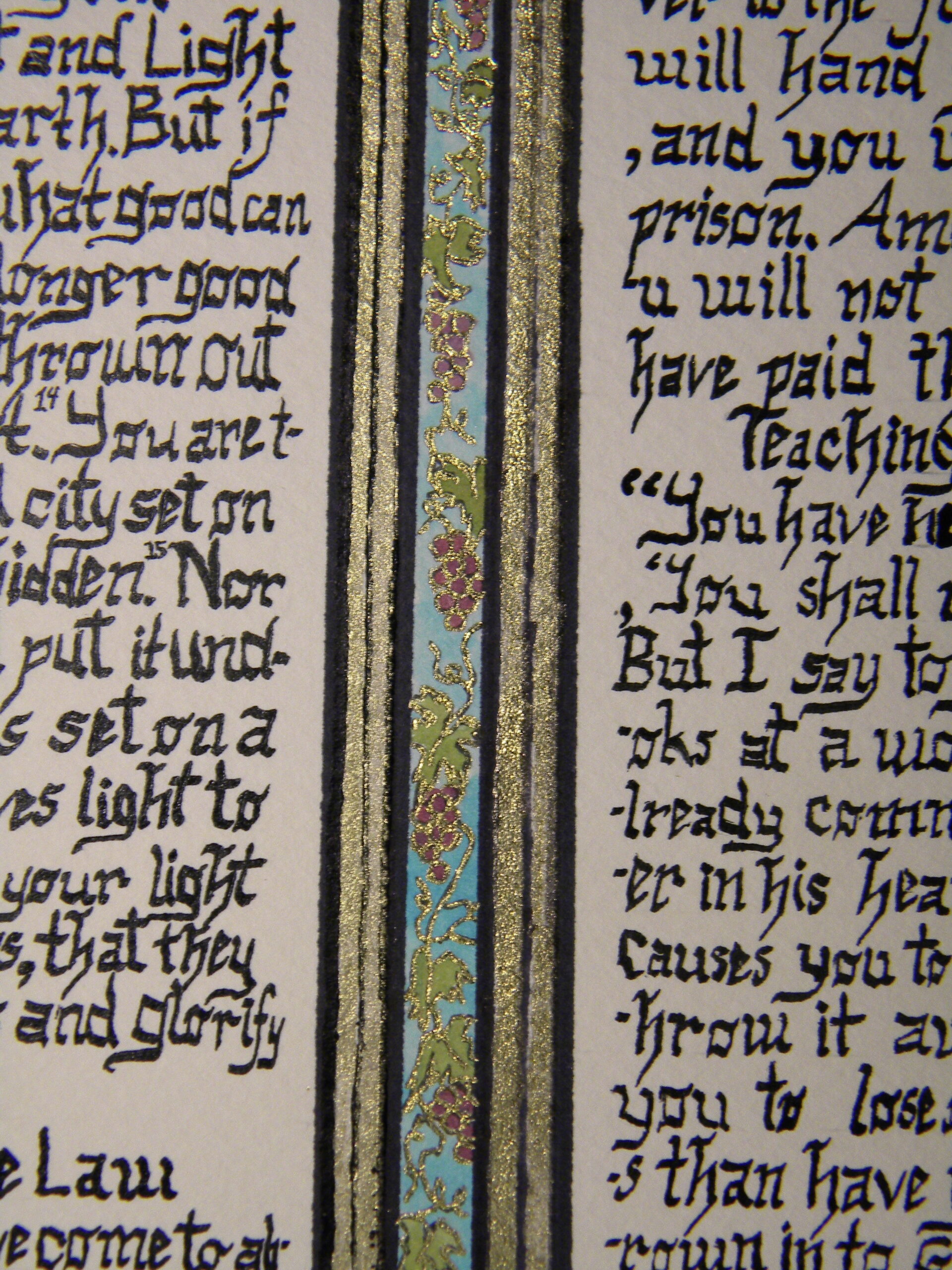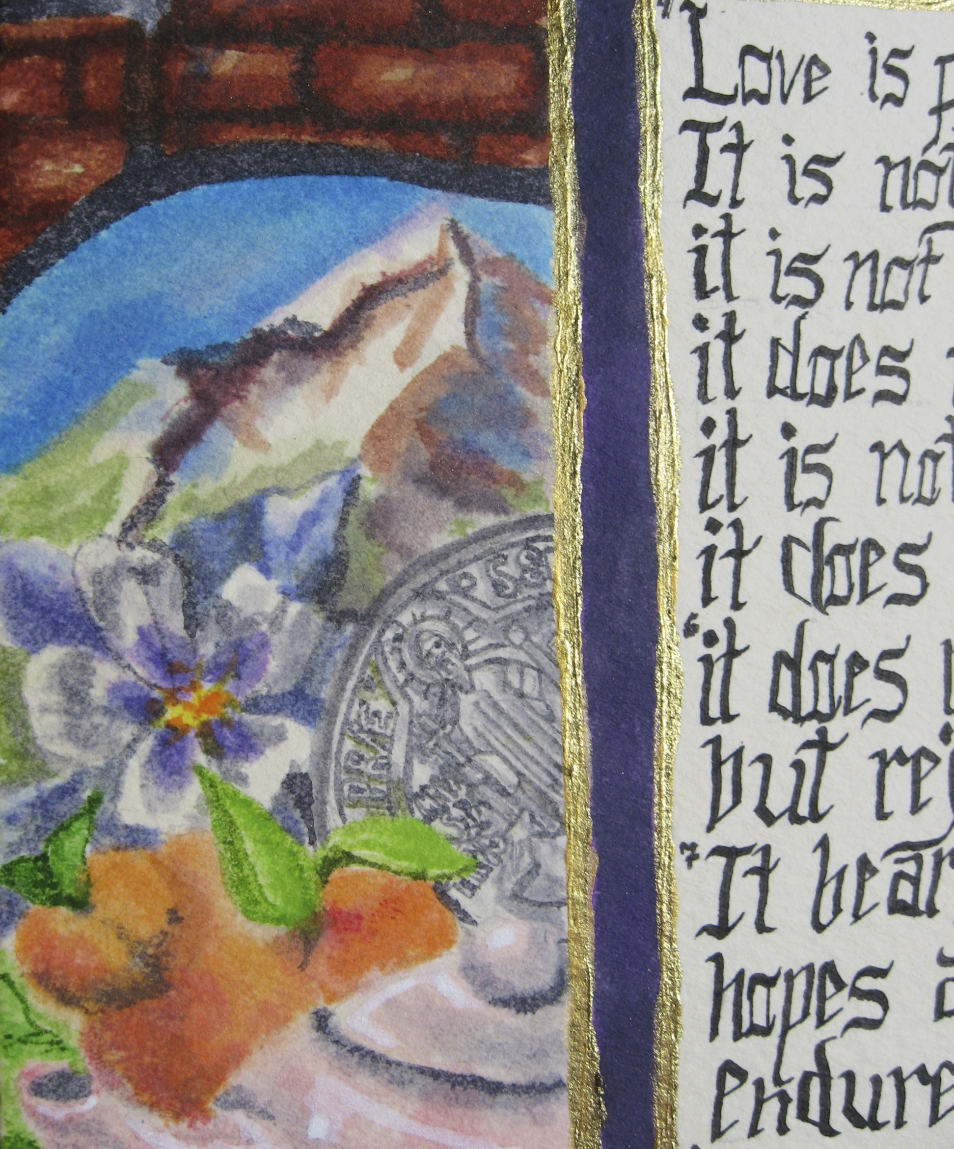 watercolor, brass suspended liquid, ink, calligraphy pen