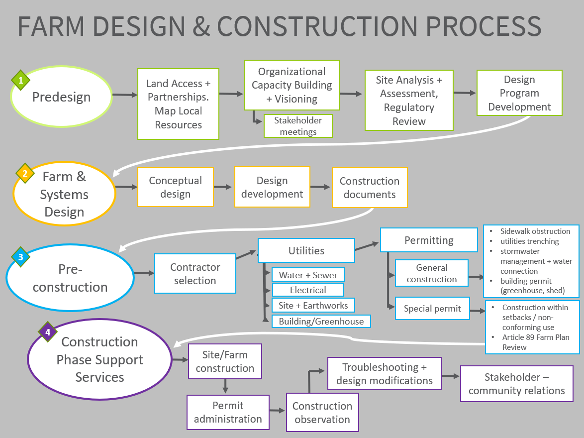 Molly Burhans developed a regenerative farm plan for Gardening the Community’s Walnut Street site in Springfield, MA, rooted in principles of ecological stewardship, food justice, and community resilience. The design integrated edible landscapes, water management, and multifunctional growing spaces tailored to the urban context and the organization’s youth-centered mission. This final plan was then reviewed and permits were approved in collaboration with Regenderative Design Group (RDG) landscape architects and engineers, as required for elements of the design such as hardscape, utility augmentation, and building.