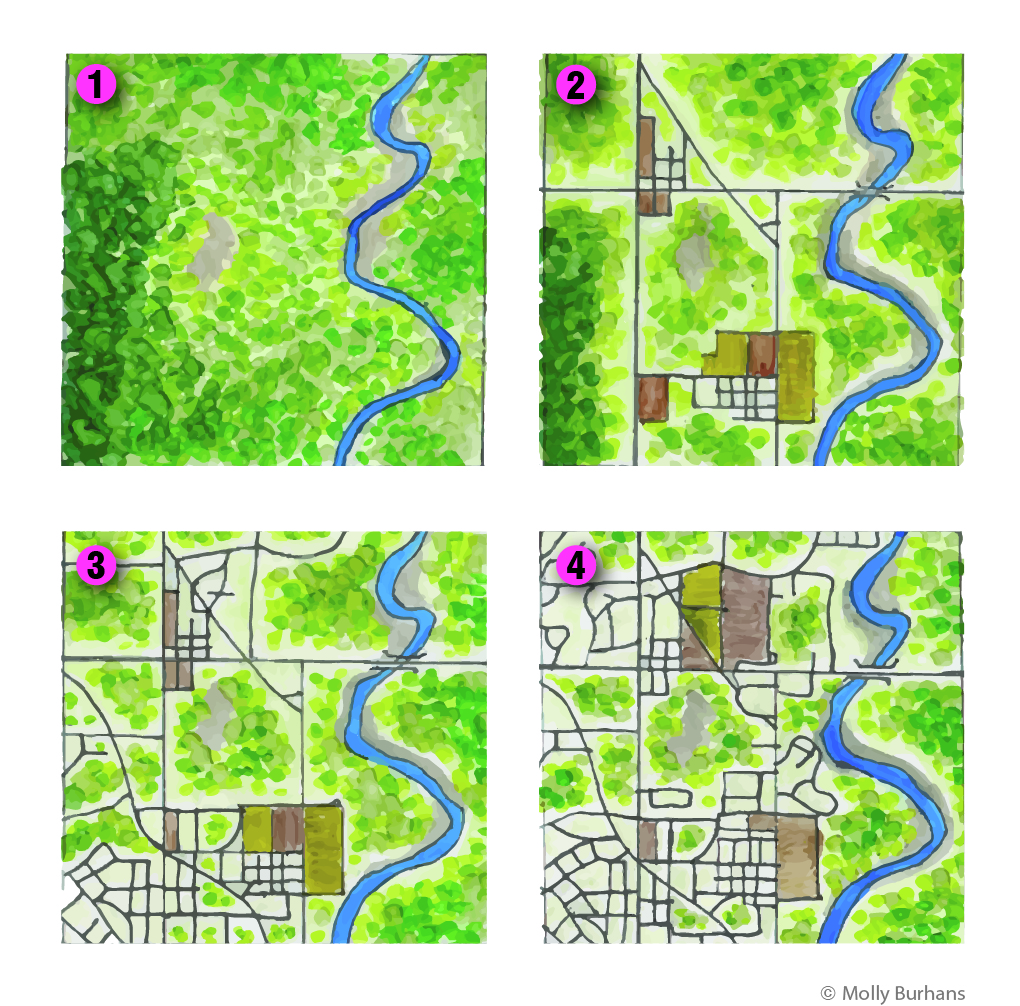 [Inspired by the diagrammatic style and work of landscape ecologist Richard T.T. Forman]