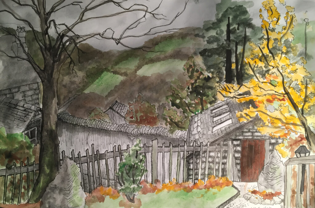 watercolor and pen